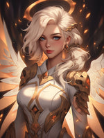 Introducing our "Angelic Artificer" 5D Diamond Painting kit. This radiant female figure shines with divine beauty and majesty. Her wings spread wide in a symbol of purity and strength, creating a mesmerizing image that glows with light and color.