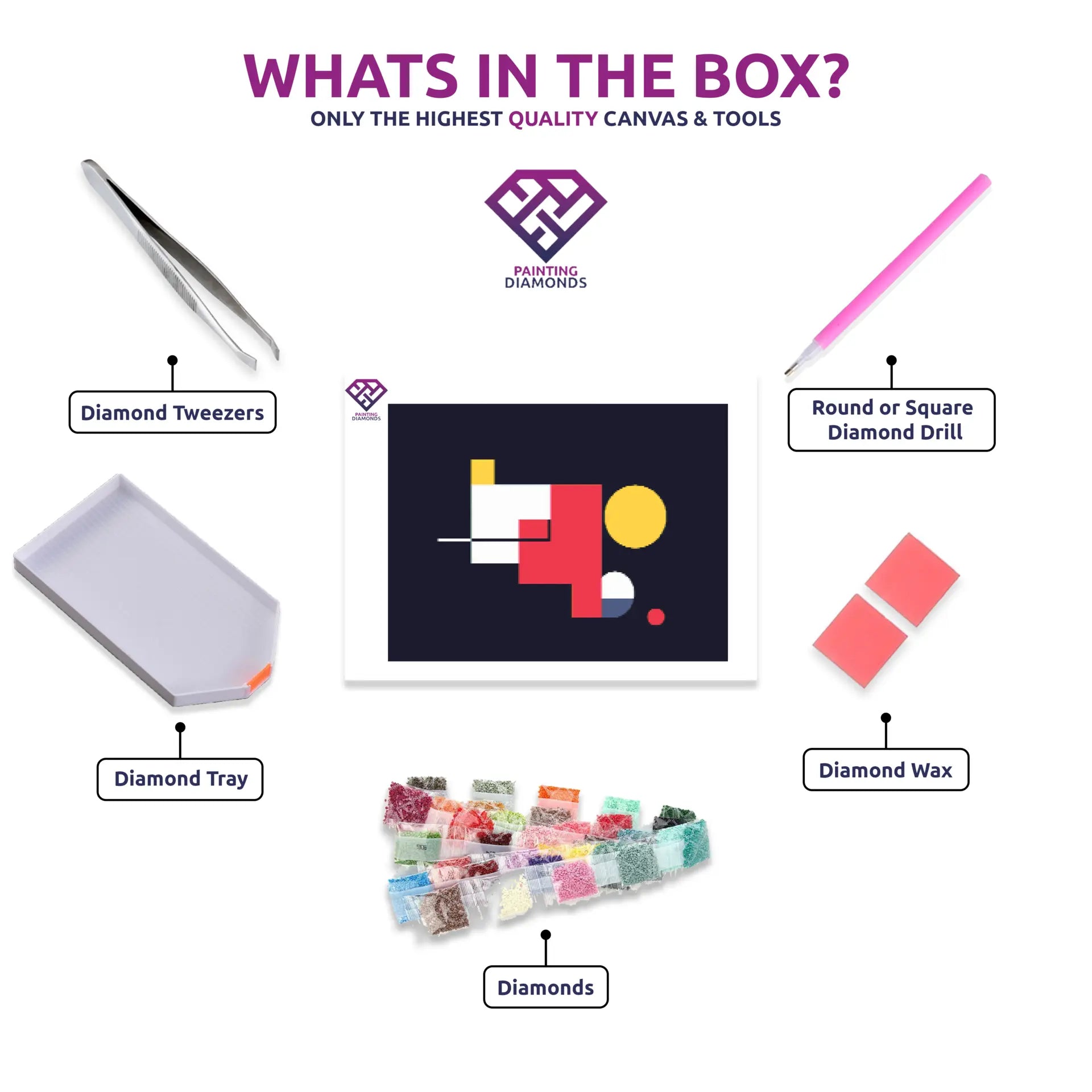 Make a statement with the Bold Contrast Shapes - Diamond Painting Kit, exclusively from Painting Diamonds. This modern design features strong geometric shapes in high-contrast colors, perfect for adding an artistic, edgy vibe to any space. Whether you love minimalism or contemporary art, this piece is a showstopper.