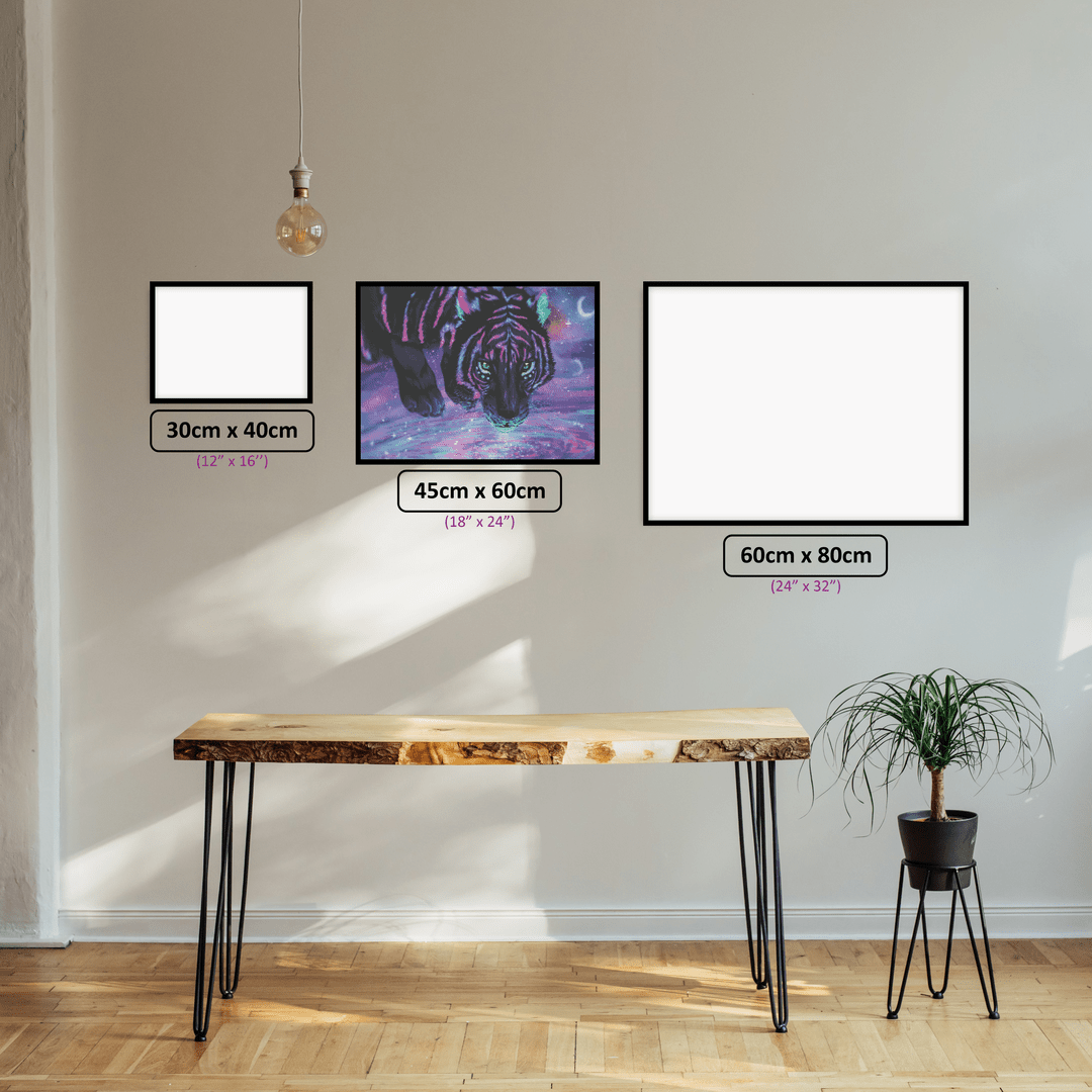 Diamond Paintings come in a range of different sizes. To make things easy we like to categorise sizes into complexity: