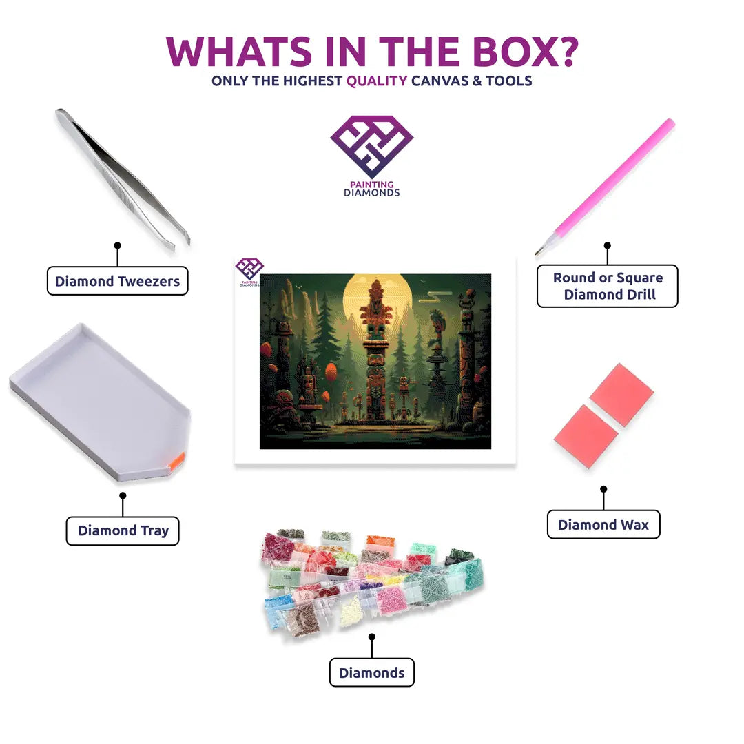 Connect with the spiritual essence of Native American culture with our "Native American Spirit" diamond painting. 🌲 This spiritual representation features totem poles and nature motifs, capturing the deep connection to the natural world. Choose between regular diamonds or shimmering AB diamonds for an added touch of mystique. To fully immerse yourself in the cultural richness, we recommend a minimum size of 45x60. Embrace the spirit of Native American heritage with this captivating diamond painting.
