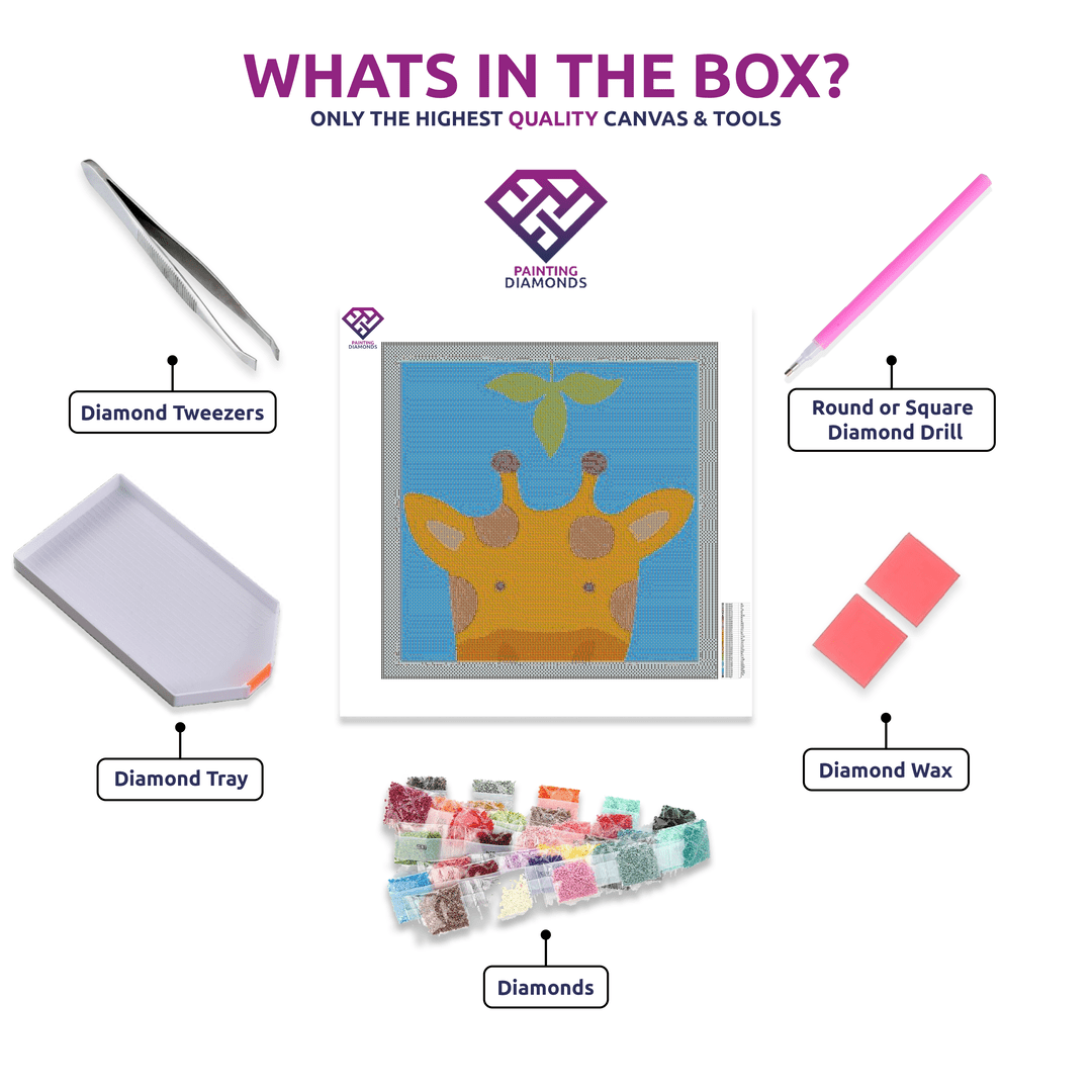 The Giraffe Beginner Diamond Painting is a fun filled diamond painting for kids of all ages. Sizing in at 15x20cm is the perfect size for kids, and people wanting to get into diamond painting