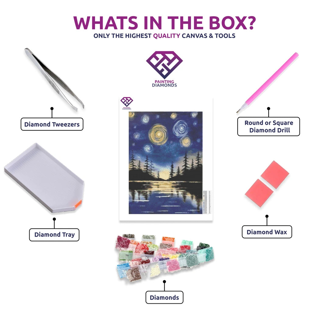 Galactic Lake Nightscape - 5D Diamond Painting Kit