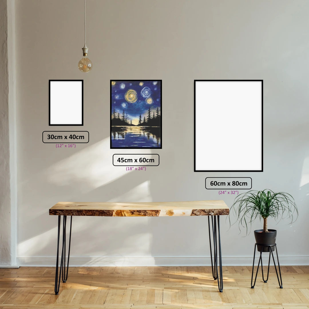 Embrace the beauty of the cosmos with our "Galactic Lake Nightscape" 5D Diamond Painting kit. This stunning piece captures a serene lake scene at night, with galaxies shimmering above the tranquil waters. Lose yourself in the captivating combination of earthly tranquility and celestial wonder as you create this breathtaking masterpiece.