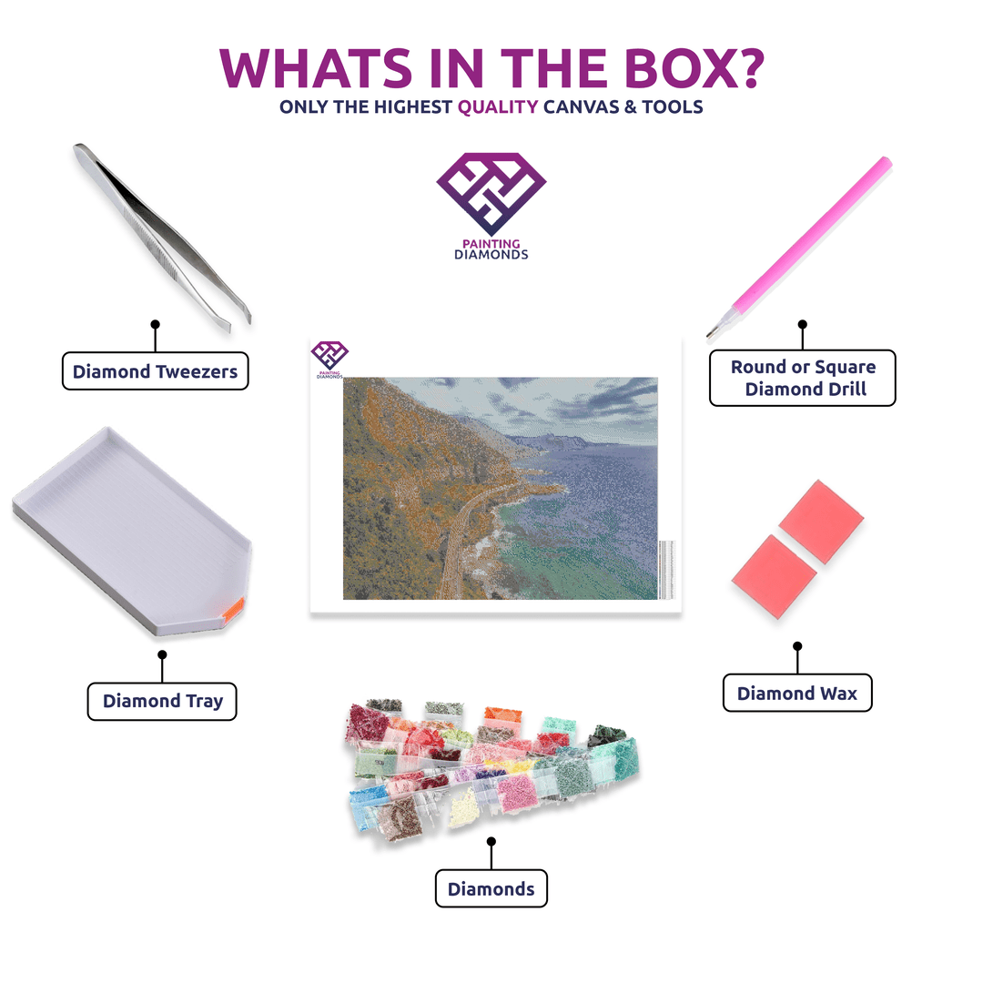 Discover "Grand Pacific Dream," a captivating diamond painting that immortalizes the stunning coastal journey along Australia's Grand Pacific Drive. Create your own vibrant, shimmering masterpiece, showcasing the picturesque scenery and dramatic cliffs on a premium canvas.