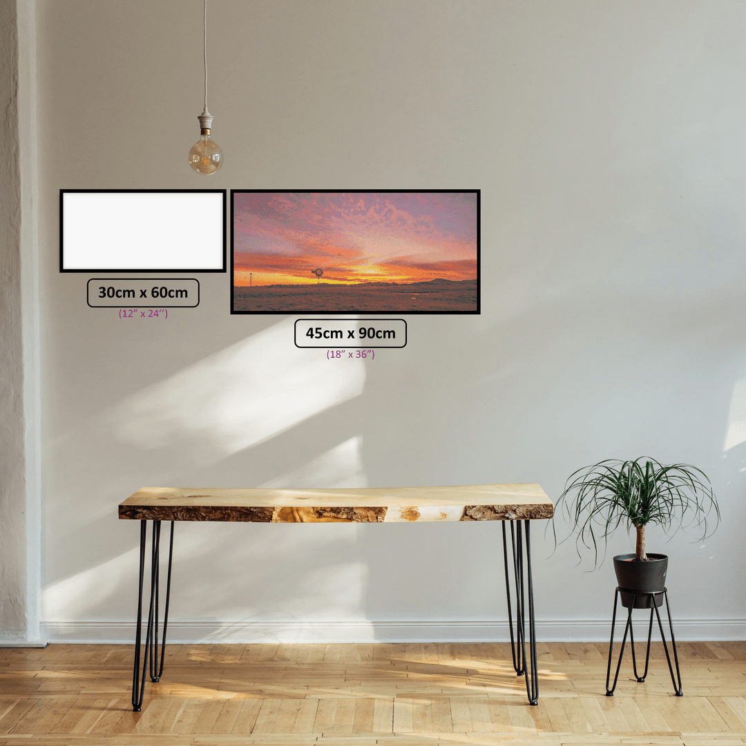 Introducing "Hunter Valley Haven," a captivating diamond painting that showcases the breathtaking beauty of Australia's Hunter Valley at sunset, complete with a charming windmill. Immerse yourself in the art of diamond painting as you recreate the warm hues of the sky and idyllic rural scenery with sparkling diamonds on a premium canvas. This enchanting piece is perfect for art lovers, adding a touch of romance and the tranquil charm of the Hunter Valley to your living space.