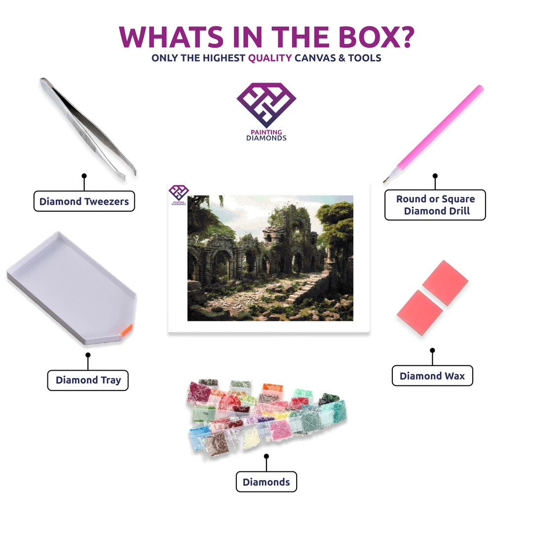 Uncover the mysteries of the past with the Ancient Ruins, an exclusive diamond painting found only at Painting Diamonds. Explore the remnants of an ancient civilization, as hints of history whisper in the winds. The alluring artwork offers a canvas that beckons your creativity, capturing the grandeur of an age gone by.