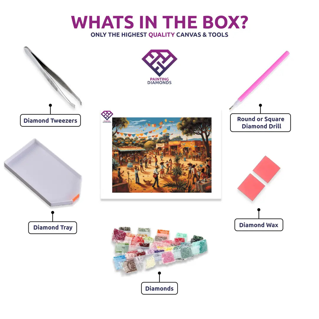 Celebrate in style with our exclusive Painting Diamonds 5D Diamond Painting Kit, "Mexican Fiesta". Dance to the rhythm of a festive celebration, complete with vibrant decorations and music.