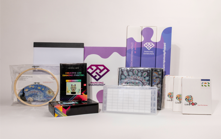 - Diamond painting accessories (notebooks, keyrings, bookmarks, lightpads, storage kits, tools) and more!